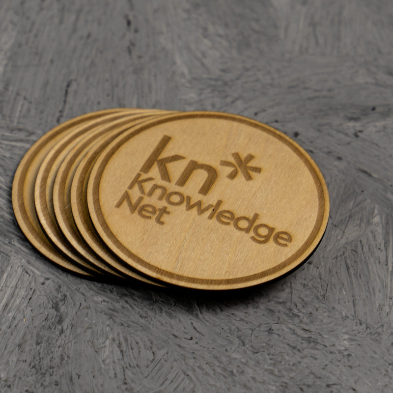 كوستر مميز للأكواب بتصميم يمكن تخصيصه بالكامل باسم شركتك أو شعارها.