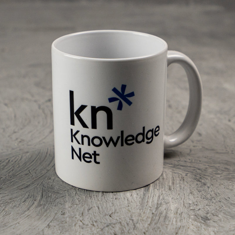 كوب بورسلين أبيض مع طباعة ملونة ☕